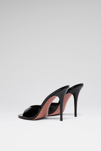 Elodie Slipper 105 Black Patent - 105mm Stiletto Heel - Rounded open toe - Fits true to size Composition - Upper: 100% Calfskin - Lining: 100% Goatskin - Sole: 100% Calfskin Origin Made in Italy