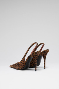 Anok Sling 105 Leopard Printed Suede - 105mm Stiletto Heel - Pointed toe - Fits true to size Composition - Upper: 100% Calfskin - Lining: 100% Kid Lining - Sole: 90% Calfskin 10% TPU Origin Made in Italy