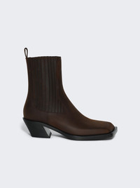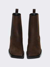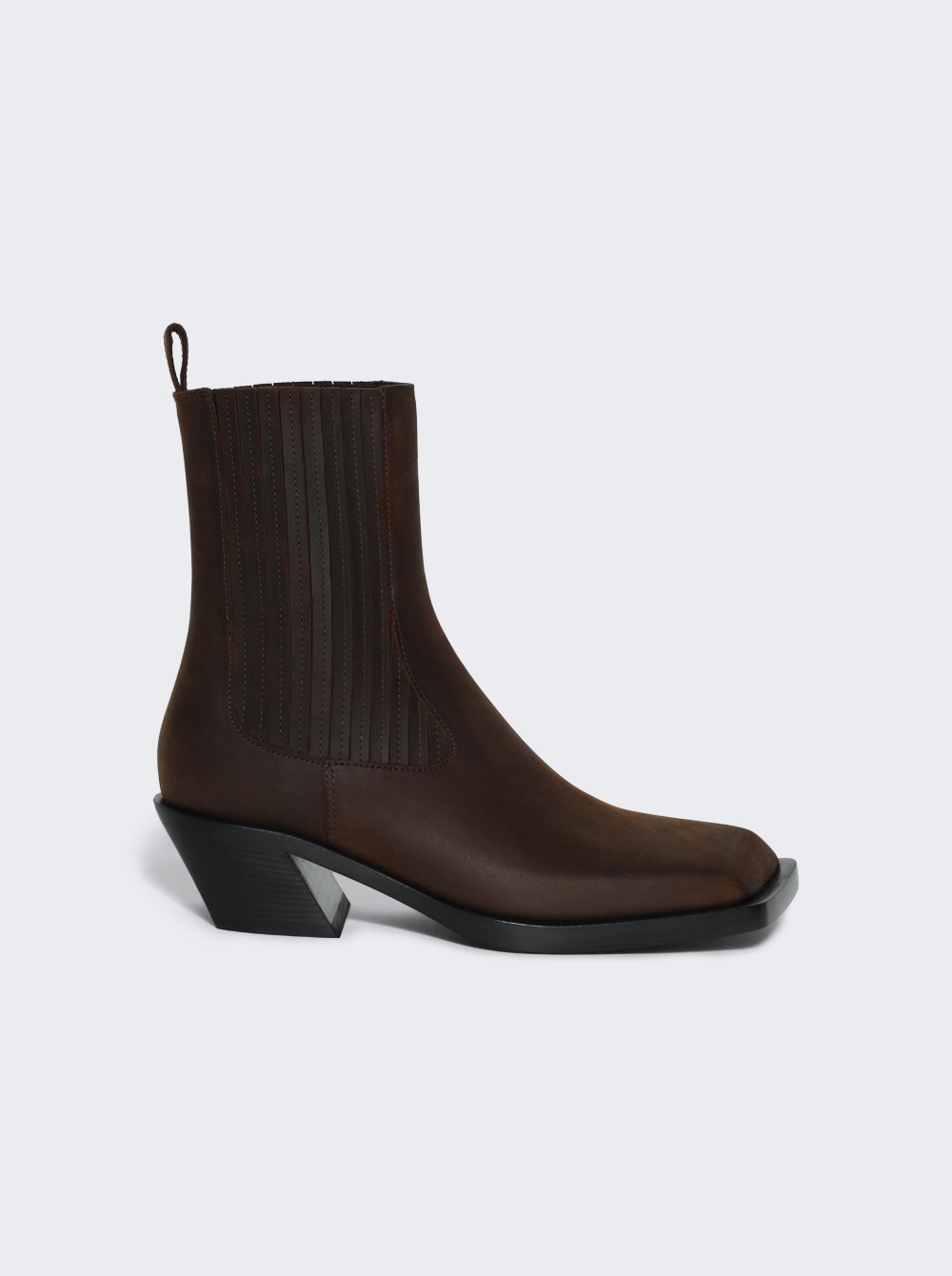 Details - Chelsea boots with a low, bended heel - Waxed leather - Square, oblique toe design - Elastic side panels - Sole: Leather and TPU - Heel height: 40mm - Listed in IT sizing, fits true to size Brand Style: CHIARA CHELSEA BOOT 40MM Designer/Brand: AMINA MUADDI