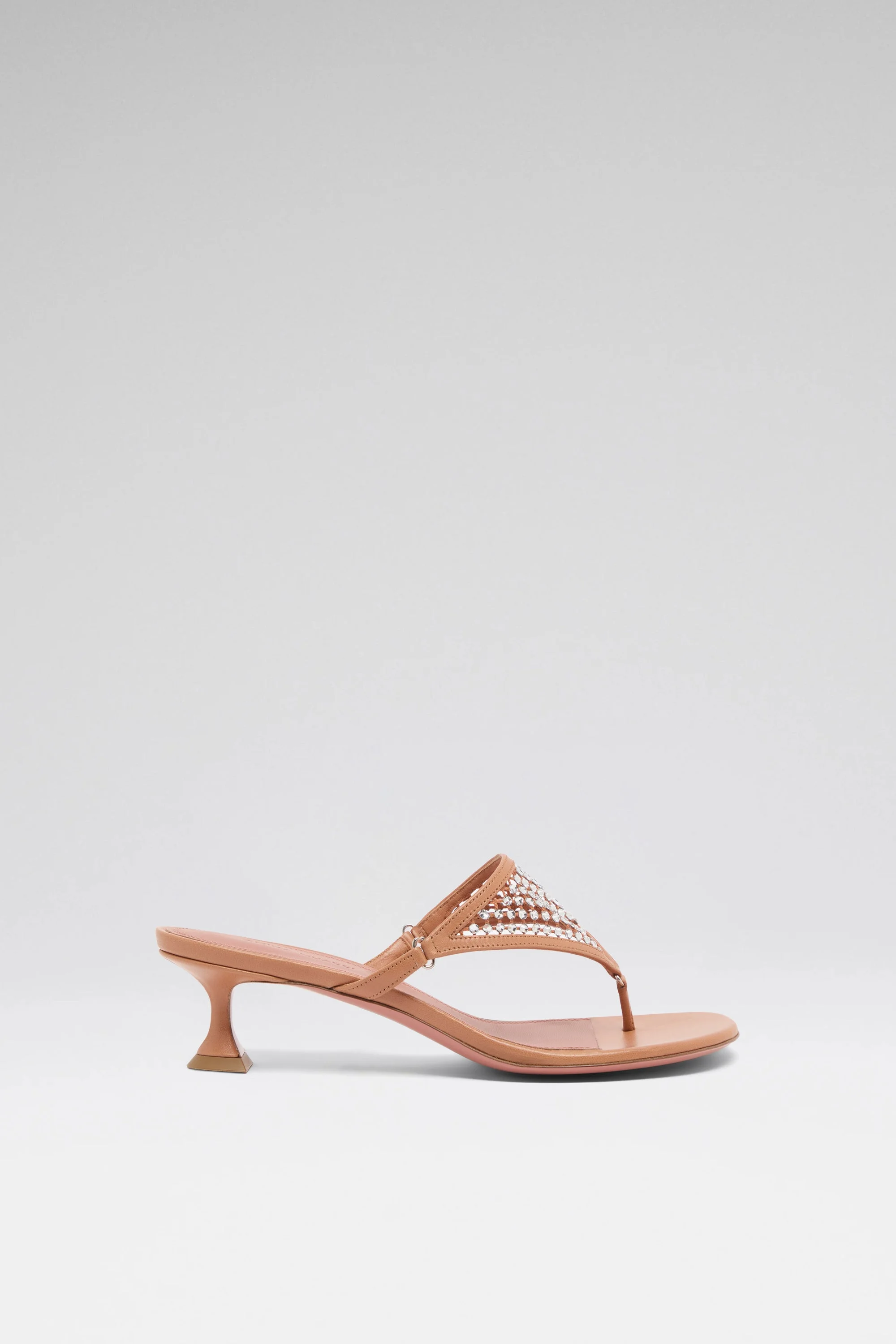 Cameron Crystal Net Sandal Latte Nappa - 45mm Mini CL Heel - White Crystal embellishment - Rounded open toe Composition - Upper: 50% Lambskin and 50% Crystals - Lining: 100% Goatskin - Sole: 90% Calfskin and 10% TPU Origin Made in Italy