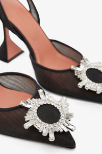 Black mesh slingback pumps from Amina Muaddi. The Begum slingback pumps is the designer's signature style. It is made from black mesh mounted on a 90mm sculptural "Martini"heel, an elegantly pointed toe complete with a crystal-embellished buckle at the front. - Leather sole - Made in Italy Product Code: 13S361089BEG
