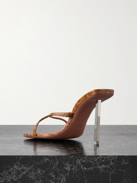 While minimal in shape, Amina Muaddi's 'Adriana' sandals will catch eyes with their interesting play on textures. Made from tactile elaphe contrasted by architectural silver-tone heels, they have square toes and slim cross-over straps. Wear yours with high hemlines to show off the details.