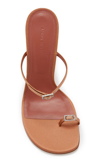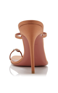 Well-crafted and unambiguously glamorous, Amina Muaddi's accessories are in high demand by international taste-makers. The brand is synonymous with vibrant hues, luxurious embellishments, and metallic shine all while being exquisitely designed to last well after the party. Crafted in Italy from lustrous satin, the ‘Adut’ sandals hug the big toe and arch with delicate straps adorned with sparkling crystal buckles, set atop a pointed stiletto. A sophisticated choice for any special occasion. PRODUCT DETAILS - Heel height measures approximately 105mm / 4" - Slip on - Composition: satin - Made in Italy