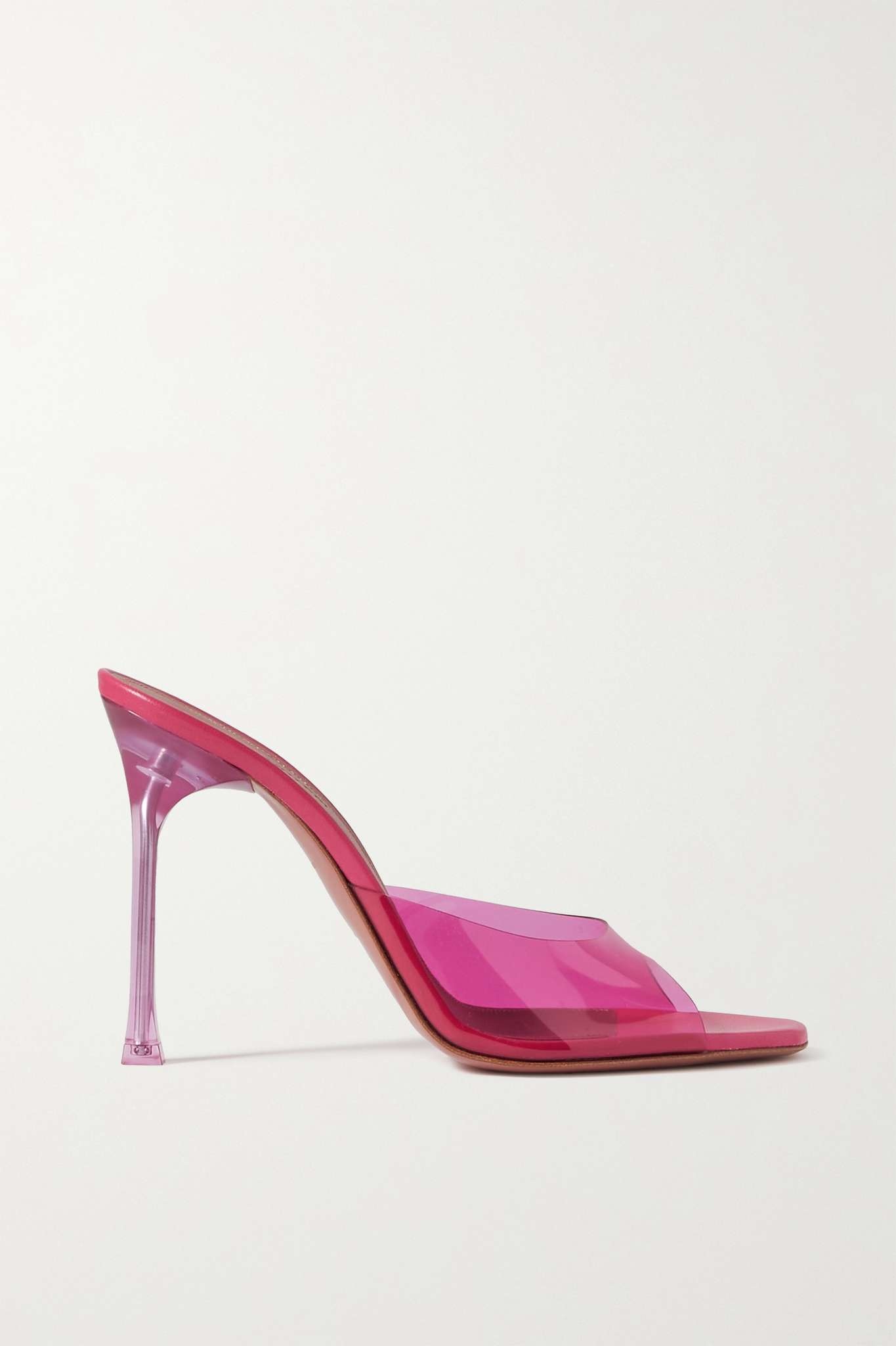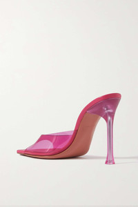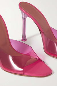 EDITORS'NOTES Amina Muaddi's 'Alexa' mules are made from hot pink PVC that matches the transparent heels - they're purposely shaped to resemble the stem of a martini glass. They have comfortable leather soles and angular toes. SIZE & FIT - Fits true to size, take your normal size - Italian sizing DETAILS & CARE - Heel measures approximately 105mm/ 4 inches - Bright-pink PVC - Slip on - Designer color: Lotus Pink