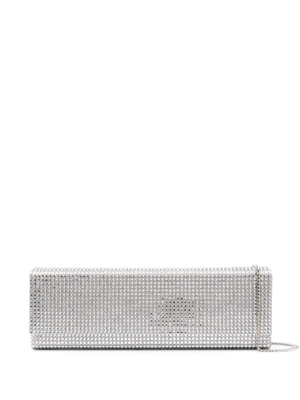 Paloma crystal-embellished clutch bag Rendered in a striking silver tone, this clutch bag by Amina Muaddi showcases the brand's affinity for glamorous design with all-over crystal embellishments that decorate its sleek, elongated silhouette. Highlights - Silver-tone - Satin finish - Crystal embellishment - Detachable chain-link shoulder strap - Foldover top with magnetic fastening - Main compartment - Internal slip pocket - Internal logo - Silver-tone hardware Made in Italy Composition Outer: Fabric 100%, glass 100% SIZE & FIT Model measurements Height 5 ft 10 in(1.78 m) Bust/Chest 32.67 in(83 cm) Hips 34.25 in(87 cm) Waist 24.4 in(62 cm) Measurement DEPTH 1.57 in(4 cm) HEIGHT 3.93 in(10 cm) STRAP 18.89 in(48 cm) WIDTH 11.41 in(29 cm)