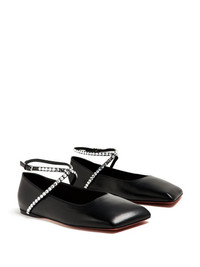 Ane ballet flats Highlights - Black - Leather - Smooth grain - Crystal embellishment - Square toe - Tie-fastening ankle strap - Branded leather insole - Flat rubber sole Made in Italy Composition Lining: Leather 100% Outer: Nappa Leather 100% Sole: Calf Leather 100% SIZE & FIT Measurement HEEL 0.27 in(0.7 cm) HEIGHT 2.63 in(6.7 cm)