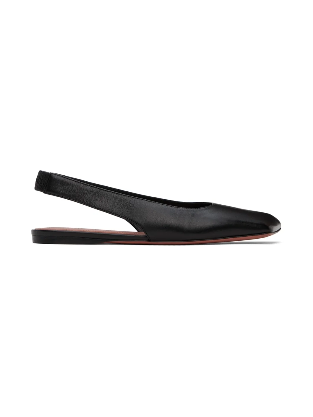 Buffed nappa leather ballerina flats in black. · Square toe · Partially elasticized slingback strap · Logo stamp at padded footbed · Leather sole with rubber injection Supplier color: Black Leather. Made in Italy 242415F118000