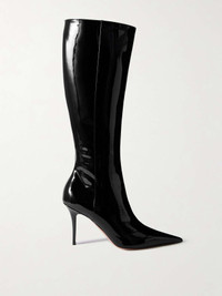 EDITORS'NOTES Amina Muaddi’s ‘Barbara’ knee boots will instantly dial up the drama of any outfit thanks to their towering 90mm stiletto heels. They’re made from glossy patent-leather and have sharp pointed toes. SIZE & FIT - Fits true to size, take your normal size - Italian sizing DETAILS & CARE - Heel measures approximately 90mm/ 3.5 inches - Black patent-leather (Calf) - Zip fastening along side