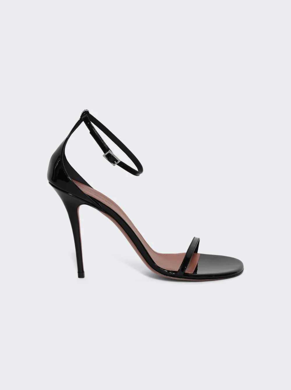 Details - High heel sandals in black patent leather - White crystal buckle - Stiletto heel - Heel height: 105mm - Material: 100% Calf Leather Size Information: Vendor Color Code: Brand Style: BARBARA SANDAL 105 BLACK PATENT + WHITE CRYSTAL BUCKLE Designer/Brand: AMINA MUADDI