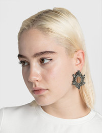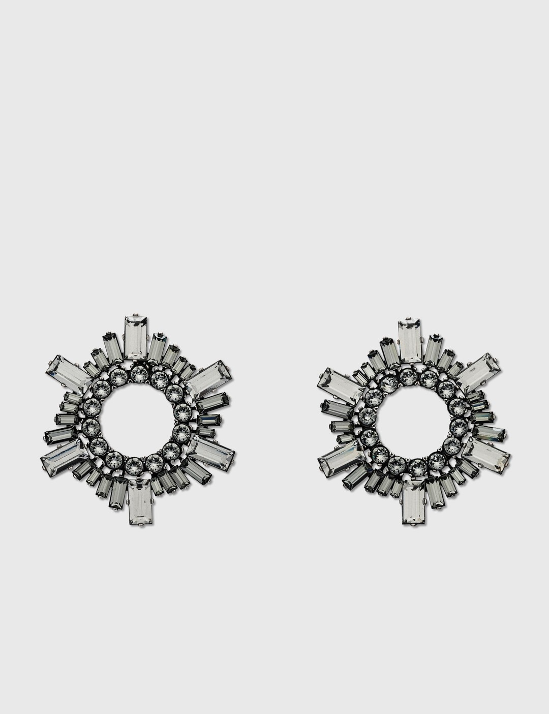 - Amina Muaddi - Mini Begum Earrings - Radial design - Round and baguette-cut Swarovski crystals - Charcoal-tone brass construction - Stud closure - Color: Black - Material: 100% Crystal, 100% Brass - See more - Earrings - , - Jewellery - and - Accessories SIZING Approximate measurement: - Diameter: 4.5cm