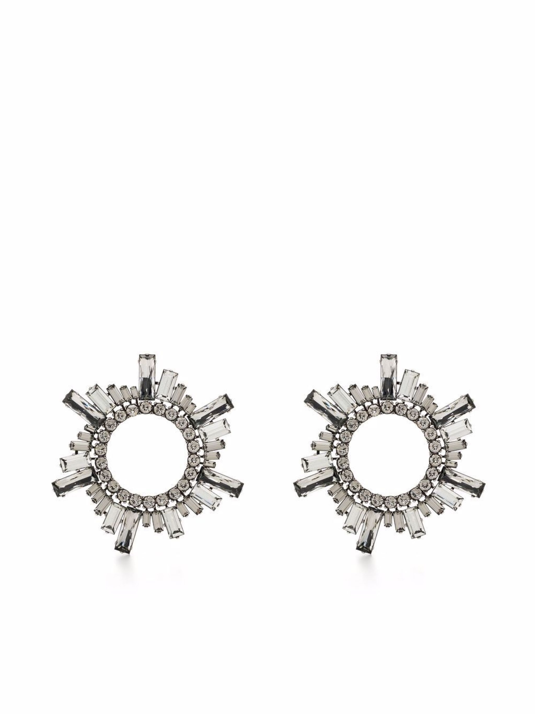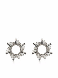 Silver glass round crystal stud earrings from AMINA MUADDI featuring crystal embellishment, gemstone detailing, butterfly fastening and antique effect finish. These earrings come as a pair.. Size & Fit Model Measurements: Bust: 83cm Height: 175cm Hips: 94cm Waist: 62cm HEIGHT: 6.8cm Weight (single earring): 24g WIDTH: 6.8cm Fabric and Care Designer Style ID: BEGUMEARRINGS Designer Colour: BLACK DIAMOND CRYSTAL/ ANTIQUE SILVER Composition: Metal 100%, Glass 100% Made in Italy