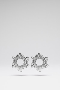 Mini Begum Earrings White Crystals With Silver Base - Crystal embellished - 45MM X 45MM - Post-back fastening for pierced ears Composition - 45% brass - 55% crystals strass Origin Made in Italy
