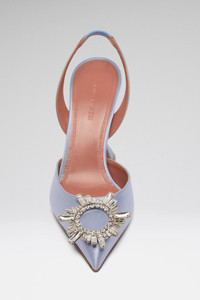 Begum Sling 95 Lavender Grey Satin - 95mm Signature Heel - Starbust embellished brooch - Pointed toe design design - Fits small - we recommend one size up - Dust bag and box included Color Lavender grey satin Composition - Upper: 100% Silk - Lining: 100% Goatskin - Sole: 90% Leather 10% Rubber Origin Made in Italy