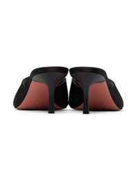 Satin heeled sandals in black. · Open toe · Mismatched crystal-cut text at vamp · Logo-embossed grained lambskin footbed · Covered kitten heel · Leather sole with rubber injection · Heel: H2.5" Supplier color: Black Upper: textile. Sole: leather, rubber. Made in Italy 242415F125031