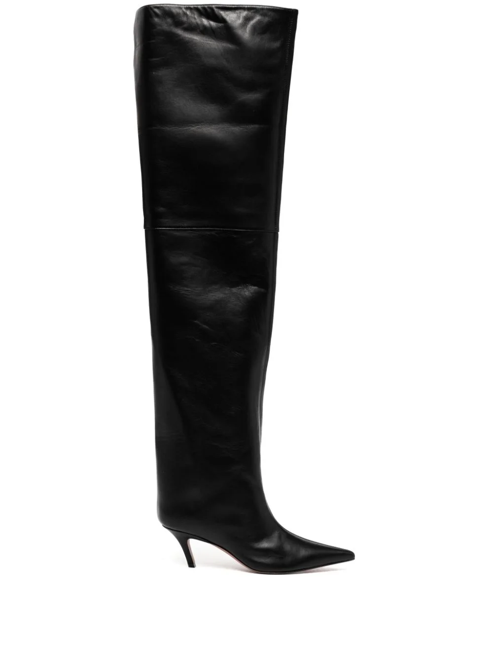 Fiona thigh high boots Highlights - Black - Pointed toe - Panelled design - 60mm bended heel - Original box included. Made in Italy Composition Sole: Leather 100% Lining: Leather 100% Outer: Leather 100% SIZE & FIT Measurement HEEL 2.36 in(6 cm)