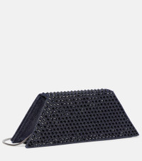 Perfect for a night out, Amina Muaddi's Superamini Yigit clutch boasts a sculptural trapeze silhouette that's sure to catch the eye. It's crafted from blue denim with rhinestone embellishments and has a chain strap. Product Details - Material: fabric - Lining: leather - Made in Italy - Internal details: card slot - Closure: magnetic fastening - Detachable chain shoulder strap - Comes with dust bag - Comes with a box - Item number: P00812615 Size & Fit - Max. height 9cm-3.5" - Min. width 14,5cm-5.5" - Max. width 23cm-9" - Min. depth 3,5cm-1.5" - Max. depth 5cm-2" - Chain length 114cm-45" - Suitable for small smartphones (e.g. iPhone 12 mini / Samsung Galaxy Z Flip 2)
