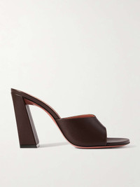 EDITORS'NOTES Amina Muaddi's 'Brigitte' mules have a vintage-inspired peep toe, though the towering 95mm block heel feels totally contemporary. Made from 'Mocha' brown leather, they'll go so well with both jeans and dresses. SIZE & FIT - Fits true to size, take your normal size - Italian sizing DETAILS & CARE - Heel measures approximately 95mm/ 4 inches - Brown leather (Lamb) - Slip on - Designer color: Mocha