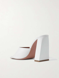 EDITORS'NOTES Amina Muaddi's 'Brigitte' mules have a vintage-inspired peep toe, though the towering 95mm block heel feels totally contemporary. Made from optic white leather, they'll go so well with both jeans and dresses. SIZE & FIT - Fits true to size, take your normal size - Italian sizing DETAILS & CARE - Heel measures approximately 95mm/ 4 inches - White leather (Lamb) - Slip on