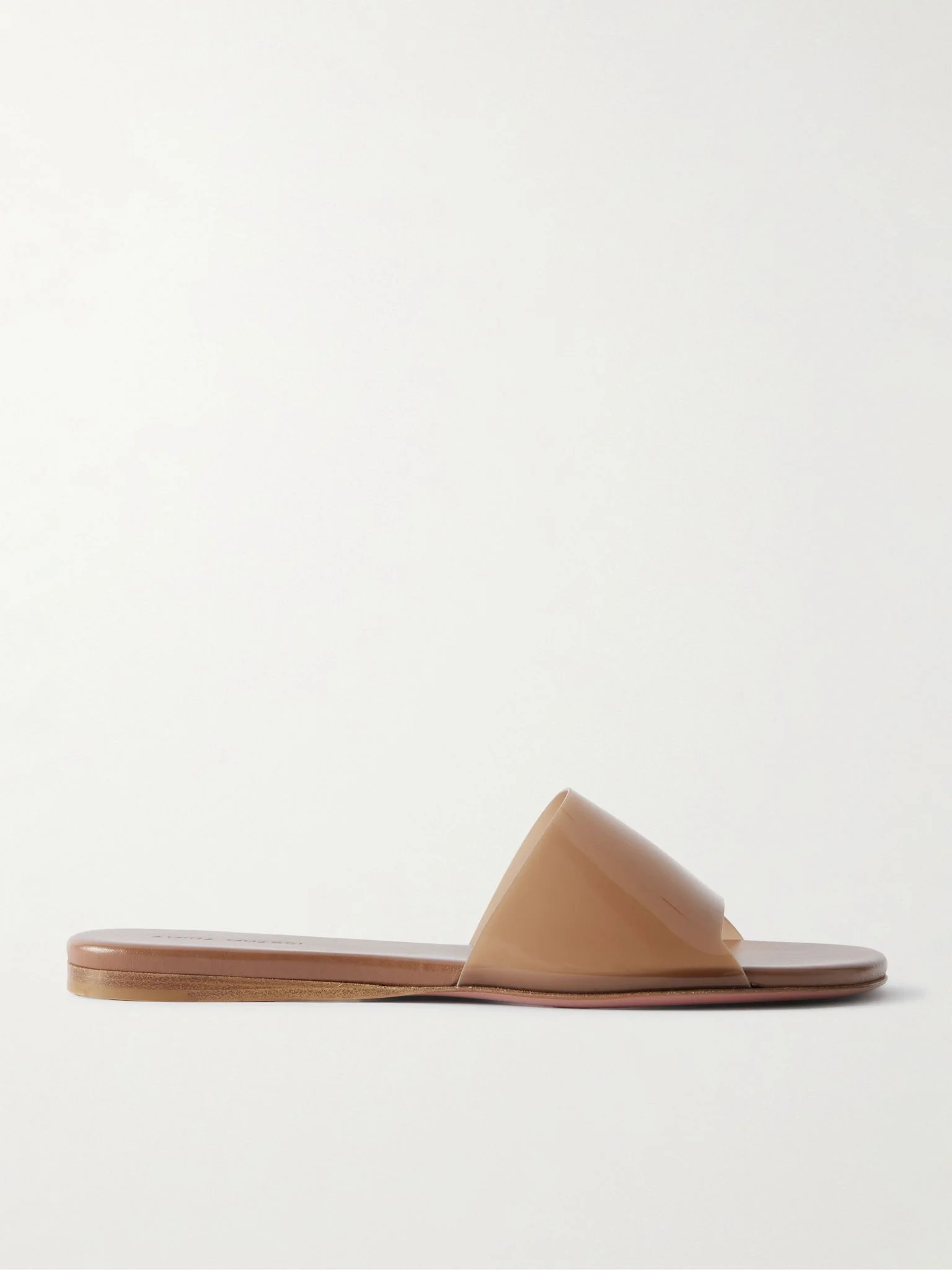 PVC straps lend Amina Muaddi’s ‘Bianca Glass’ flats a barely-there look, enhancing their modern, minimalist appeal. Made in Italy, they have rounded open toes and rest on leather soles with ever-so-slight heels. Wear yours with a fresh pedicure. Size & Fit - Fits true to size, take your normal size - Italian sizing Details & Care - Slight heels - Beige PVC - Slip on