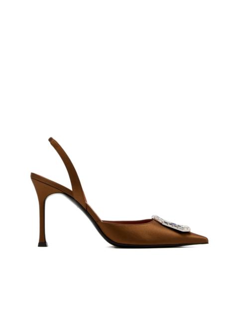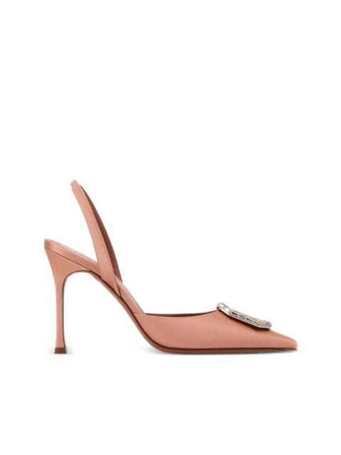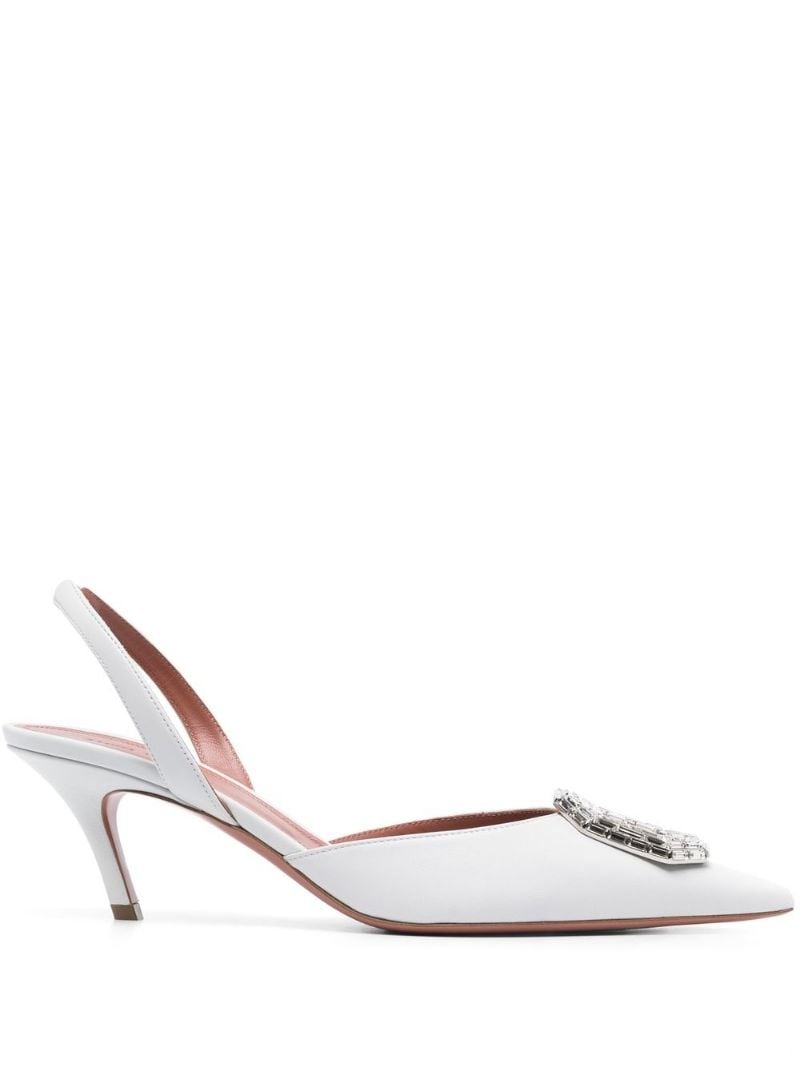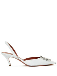 Camelia 60mm slingback pumps Amina Muaddi is known for presenting elegant footwear and accessories. The label welcomes these Camelia 60mm slingback pumps for an eye-catching and daring look, thanks to the crystal embellishment. Imported Composition Lining: Nappa Leather 100% Sole: Leather 100% Outer: Nappa Leather 100% SIZE & FIT Measurement HEEL 3.7 in(9.5 cm) HEIGHT 2 in(5 cm)