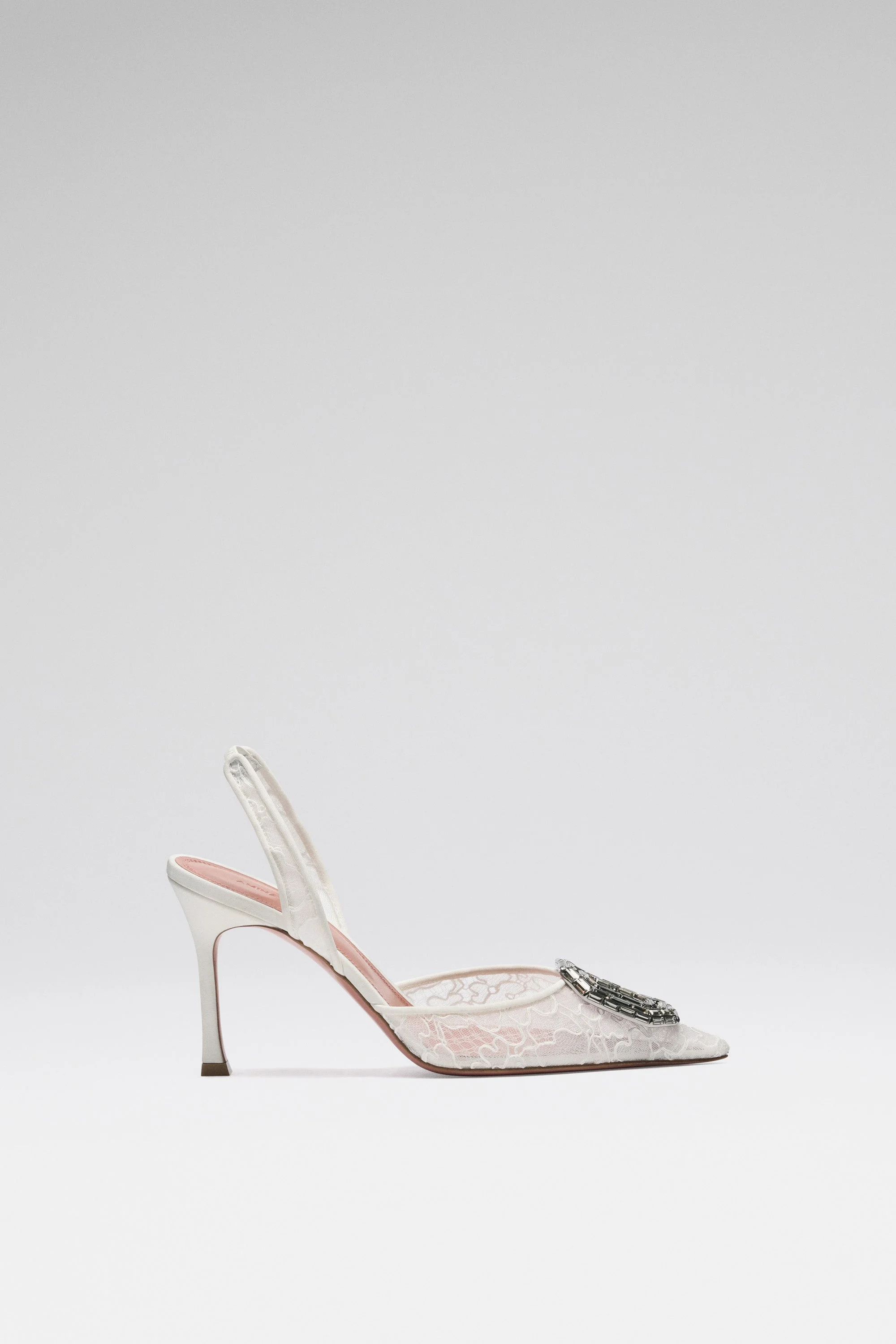 Camelia Lace Sling Ivory Lace And Antique Buckle - 90mm SR Heel - Rectangular mirrored accessory - Pointed toe design - Fits true to size Composition - Upper: 100% FABRIC - Lining: 45% FABRIC (SILK), 40% FABRIC (PA) AND 15% KID LINING - Sole: 90% LEATHER AND 10% TPU Origin Made in Italy