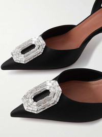 EDITORS'NOTES Amina Muaddi's 'Camelia' pumps radiate high-octane glamour. They're made from smooth black satin and set with crystal buckles to highlight the sharp, pointed toes. SIZE & FIT - Fits true to size, take your normal size - Italian sizing DETAILS & CARE - Heel measures approximately 60mm/ 2.5 inches - Black satin - Elasticated slingback strap