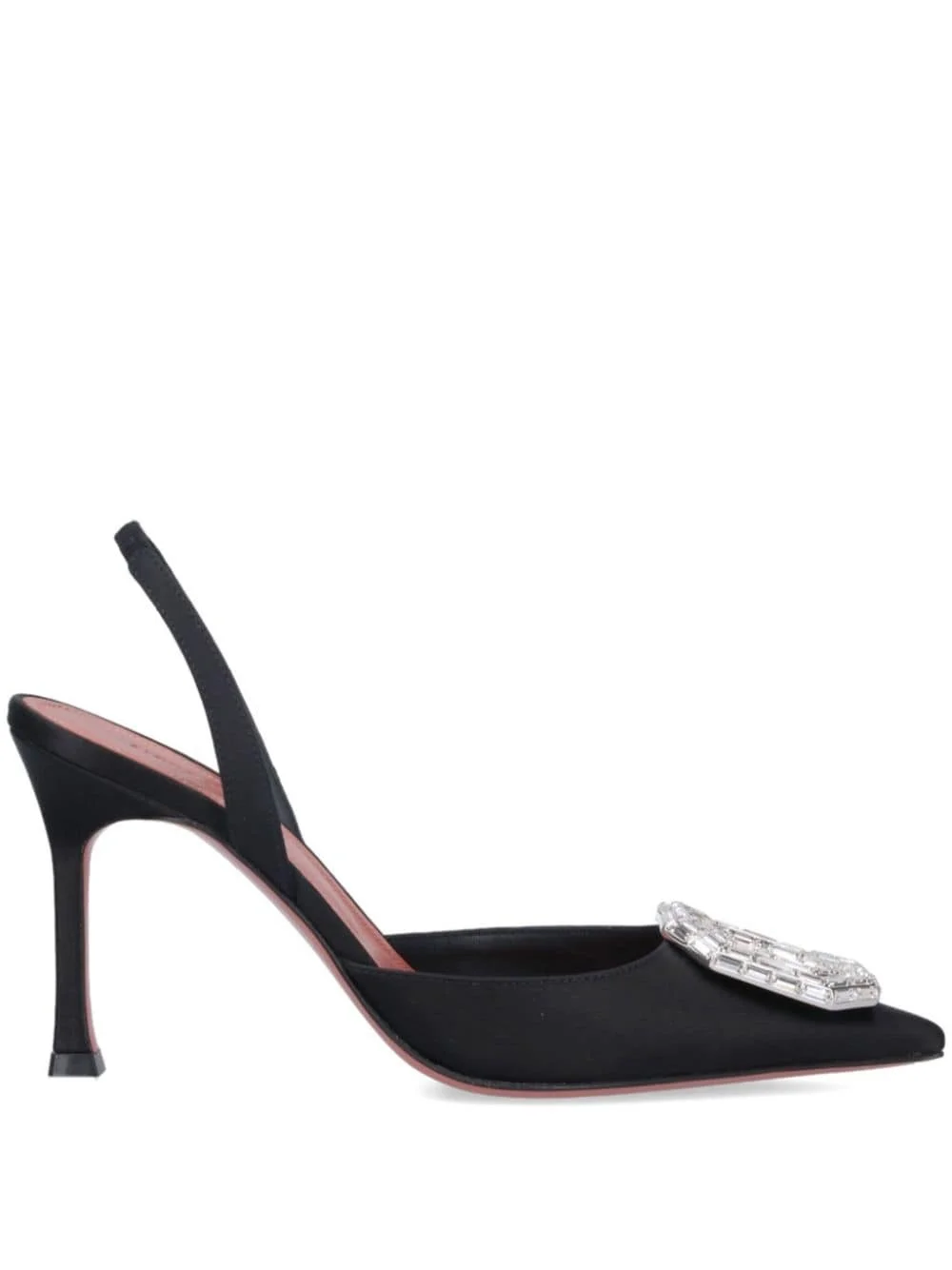 105mm Camelia pumps Highlights - Black - Satin weave - High heel - Crystal embellishment - Slingback strap - Branded leather insole - Pointed toe Made in Italy Composition Outer: Satin 100% Lining: Calf Leather 100% Sole: Calf Leather 100% SIZE & FIT Measurement HEEL 4.13 in(10.5 cm)
