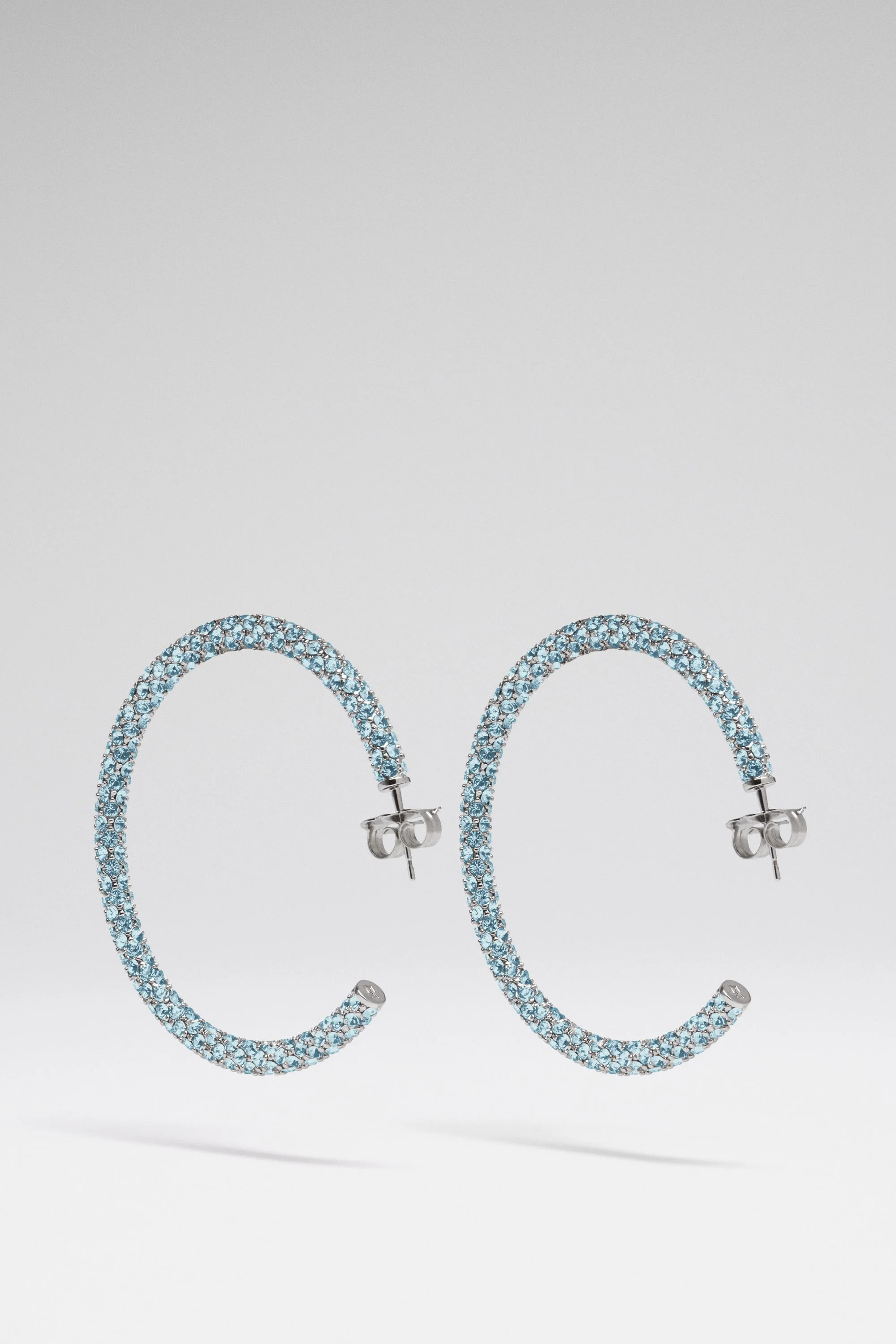 Cameron Hoop Large Aquamarine Crystals And Silver Base - Crystal embellished - 55MM X 4MM - Post-back fastening for pierced ears Composition - 65% brass - 35% crystals strass Origin Made in Italy
