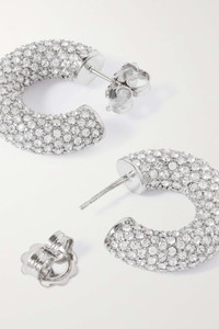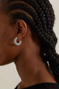 EDITORS'NOTES Amina Muaddi's 'Cameron' earrings are adorned with the same light-catching crystals as the brand's signature pumps. They're cast from silver-tone metal in a thick hoop shape that's encrusted with gems. Wear yours with the matching ring. SIZE & FIT This item’s measurements are: - Width: 0.7cm / 0.3in - Drop: 2.5cm / 1in DETAILS & CARE - Butterfly fastening for pierced ears - Come in a presentation box