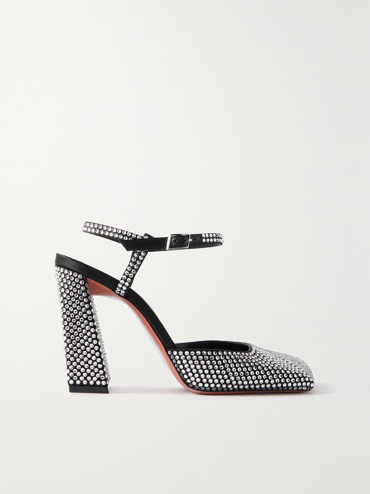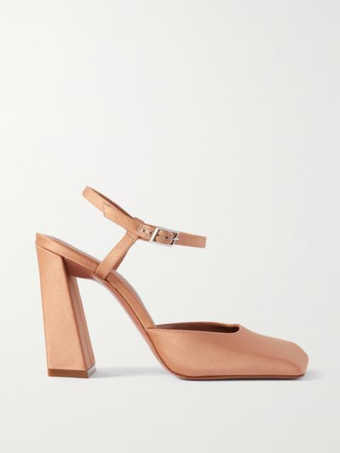 Amina Muaddi's 'Charlotte' pumps are made from satin that's covered with crystals, so they sparkle beautifully in the light. They're set on angular block heels and have slanted toes. Show yours off with ankle-skimming hems.