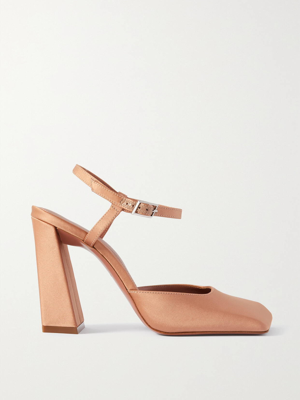 Amina Muaddi's 'Charlotte' pumps seem classic at first glance, but the slanted toes and block heels make them feel so modern. Skilfully crafted in Italy from lustrous satin, they look just as glamorous with jeans and a romantic top as they do with mini dresses and skirts.
