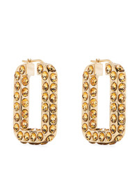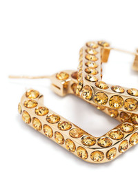 Charlotte crystal-embellished hoop earrings Chunky and sparkly white crystals on these Charlotte hoop earrings from Amina Muaddi enhance the boldness of the style. A rectangular-shaped hoop pending from a lever fastening and finished with rounded corners, is designed in gold-tone hardware. Highlights - Gold-tone - Glass crystal embellishment - Rectangle shape - Medium hoop design - Polished finish - Clip fastening - For pierced ears - These earrings come as a pair. - This piece comes complete with a protective dust bag. Made in Italy SIZE & FIT Model measurements Height 5 ft 11 in(1.8 m) Bust/Chest 32.67 in(83 cm) Hips 36.22 in(92 cm) Waist 24.4 in(62 cm) Measurement HEIGHT 1.49 in(3.8 cm) Weight (single earring) 13 g(13 g) WIDTH 0.27 in(0.7 cm)
