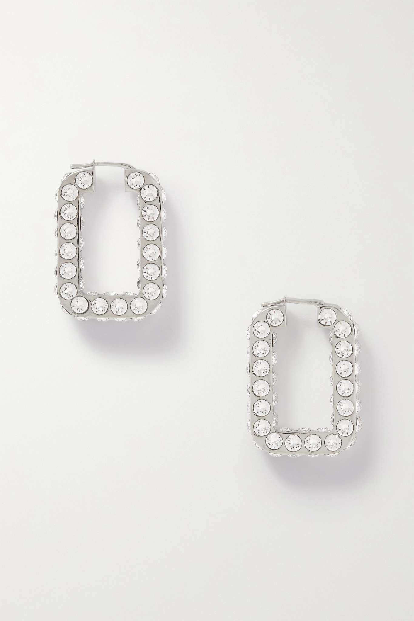 EDITORS'NOTES Amina Muaddi's 'Charlotte' earrings are adorned with scores of dazzling crystals, much like the label's glamorous heels and bags. They're cast from silver-tone metal in a chunky shape that feels surprisingly lightweight and have rounded edges. SIZE & FIT This item’s measurements are: - Length: 4cm / 1.6in - Width: 2.5cm / 1in DETAILS & CARE - Post and clasp fastening for pierced ears