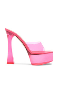 Well-crafted and unambiguously glamorous, Amina Muaddi's accessories are in high demand by international taste-makers. The brand is synonymous with vibrant hues, luxurious embellishments, and metallic shine all while being exquisitely designed to last well after the party. Meticulously crafted in Italy, the 'Dalida' platforms have a disco-inspired design made from transparent PVC. Wear with retro evening looks. PRODUCT DETAILS - Heel measures 140mm/ 5.5"; Platform measures 40mm/ 1.5" - Slip on - Composition: PVC - Designer color: Rose - Made in Italy