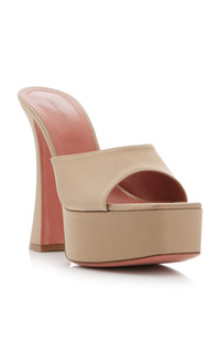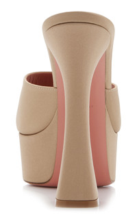 Well-crafted and unambiguously glamorous, Amina Muaddi's accessories are in high demand by international taste-makers. The brand is synonymous with vibrant hues, luxurious embellishments, and metallic shine all while being exquisitely designed to last well after the party. Meticulously crafted in Italy, the 'Dalida' platforms have a disco-inspired design made from neutral-hued satin. Wear with retro evening looks. PRODUCT DETAILS - Heel measures 140mm/ 5.5"; Platform measures 40mm/ 1.5" - Slip on - Composition: satin - Designer color: Taupe - Made in Italy
