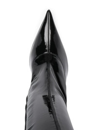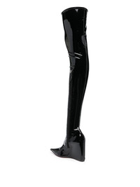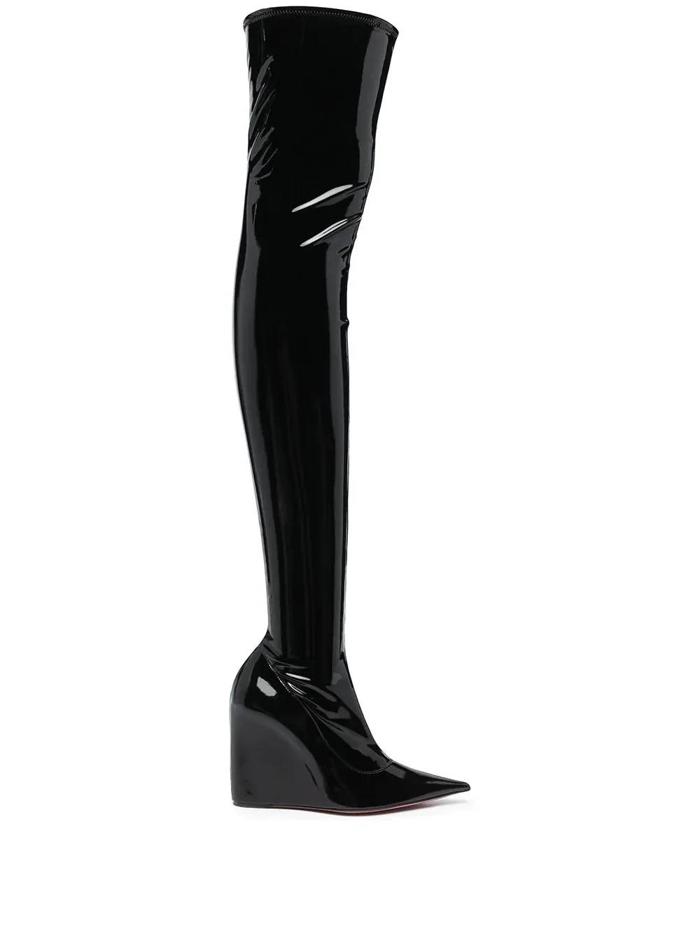 Danielle thigh-high glossy boots calf leather high-shine finish pointed toe thigh-high branded insole high wedge heel Made in Italy Composition Outer: Calf Leather 100%, Polyester 100% Lining: Leather 100% SIZE & FIT Measurement CIRCUMFERENCE 15.74 in(40 cm) HEEL 3.93 in(10 cm) HEIGHT 27.55 in(70 cm)