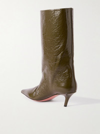 EXCLUSIVE AT NET-A-PORTER. Amina Muaddi's 'Fiona' boots look just as glamorous in person as they will in pictures. Made from crinkled-leather, they have sharp pointed toes and are set on distinctive slanted heels. Team yours with mini hemlines and oversized blazers.