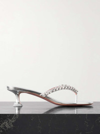 EDITORS'NOTES Amina Muaddi's 'Gigi' sandals will add a touch of glamour to your look. Made from silver leather, they have thong straps embellished with sparkling crystals and rest on signature 45mm fluted heels. SIZE & FIT - Fits true to size, take your normal size - Italian sizing DETAILS & CARE - Heel measures approximately 45mm/ 2 inches - Silver leather (Calf) - Slip on