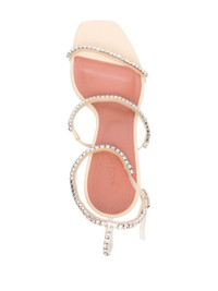 beige calf leather pebbled texture square open toe multiple straps with crystal embellishment branded leather insole 105mm mid sculpted heel buckle-fastening ankle strap Size & Fit Model Measurements: Bust: 0cm Height: 0cm Hips: 0cm Waist: 0cm HEEL: 10.5cm HEIGHT: 17cm Sole height: 1cm Fabric and Care Designer Style ID: GILDAGLASSSANDAL Designer Colour: PVC VANILLA Composition: Sole: Calf leather 100%, Rubber 100%; Outer: Glass 100%, Pvc 100%; Lining: Calf leather 100%, Pvc 100%Made in Italy