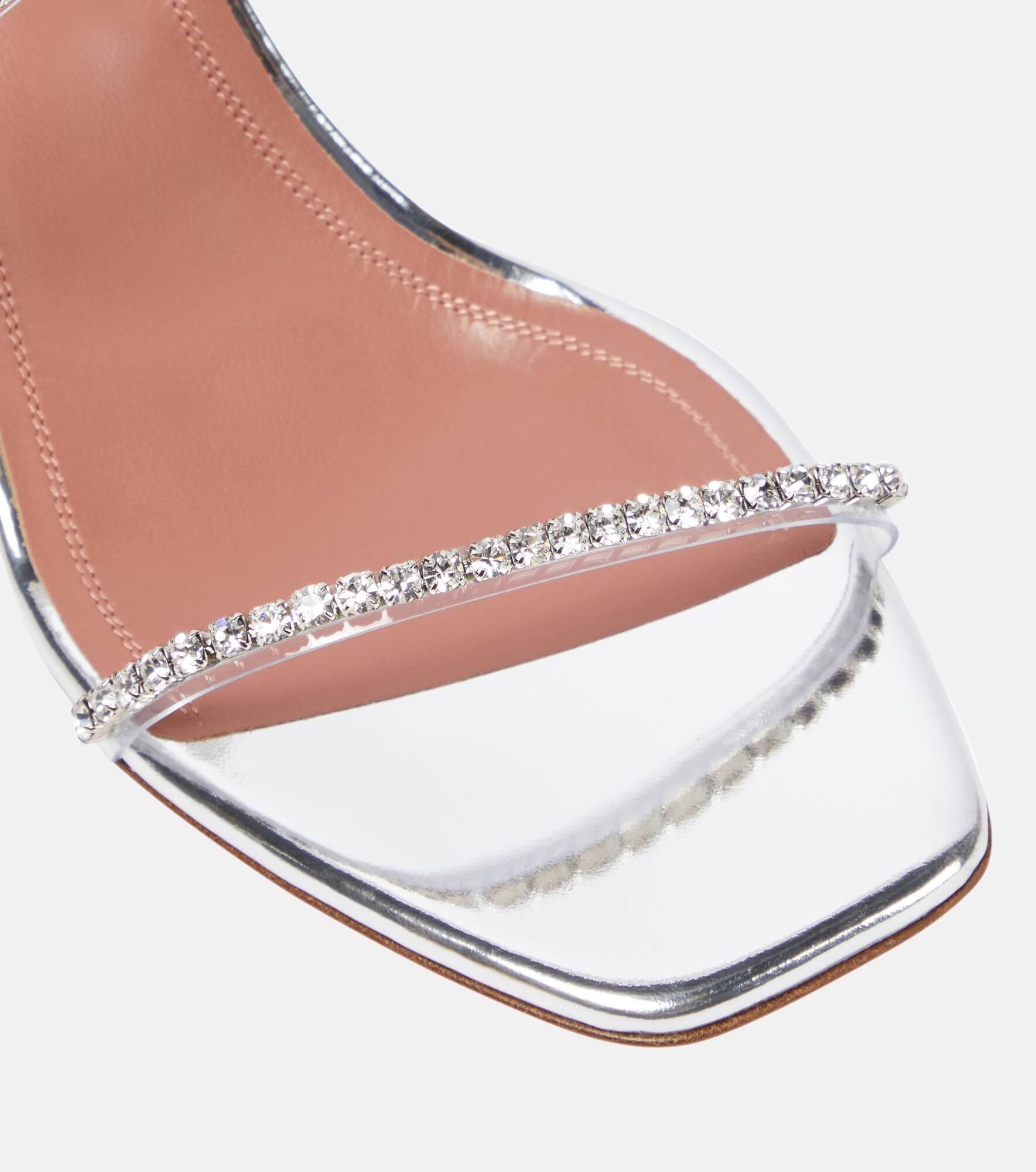 With crystal embellishments and signature flared heels, the leather Gilda mules speak to Amina Muaddi's affinity for glamour. They feature thin straps that are delicately embellishment with crystals and are set on sculpted PVC heels. Product Details - Upper: crystals, polyvinyl chloride - Lining: polyvinyl chloride - Sole: leather insole, leather and rubber sole - Comes with a box, Comes with dust bag - Toe shape: square open toe - Designer color name: Transparent/White Crystals - Made in Italy - Item number: P00688727 Size & Fit - True to size - European sizes - 7cm-3" heel (size EU 38)