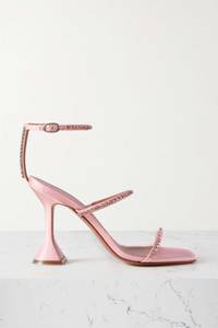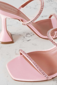 EDITORS'NOTES Always on the list for the hottest shows, Amina Muaddi has a strong presence in the fashion community - much like her friend and fellow influencer Gilda Ambrosio, who these strappy sandals are named after. Made in Italy from pink satin, they're decorated with Swarovski crystals and set atop sculptural heels. SIZE & FIT - Fits true to size, take your normal size - Italian sizing DETAILS & CARE - Heel measures approximately 95mm/ 4 inches - Baby-pink satin - Buckle-fastening ankle strap