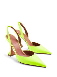 Holli 95mm denim slingback pumps Amina Muaddi describes her designs as footwear that can go 'from nine to midnight' – the brand's pieces are bold, individualistic and play on the party-shoe aesthetic. This iteration of the Holli pumps is crafted from lime green leather and fitted with the signature fluted heel. Highlights - Light green - Calf leather - Pointed toe - Branded insole - Elasticated slingback strap - 95mm fluted heel Made in Italy Composition Lining: Leather 100% Outer: Leather 100% Sole: Leather 100% SIZE & FIT Measurement HEEL 3.93 in(10 cm) Sole height 0.19 in(0.5 cm)