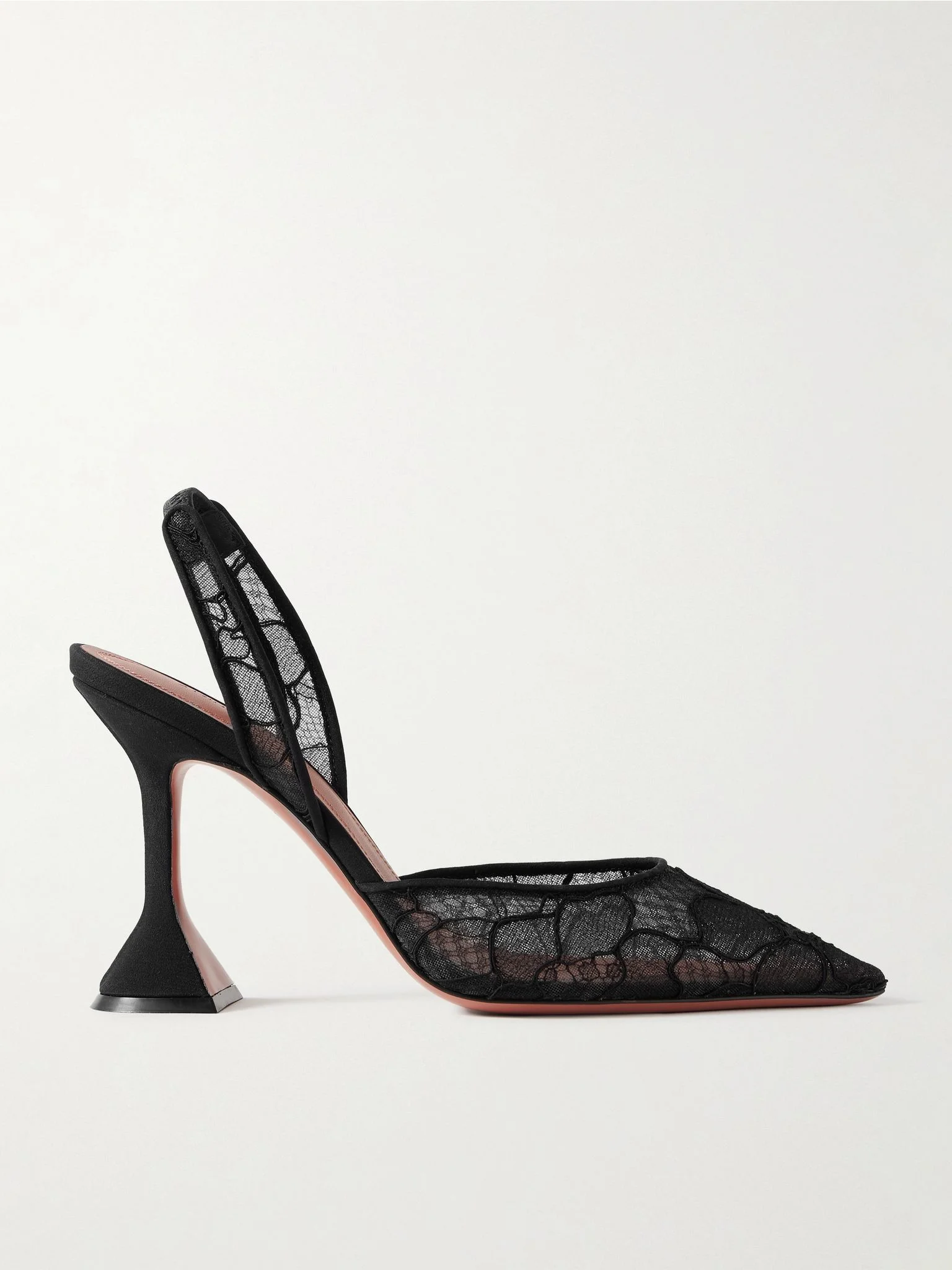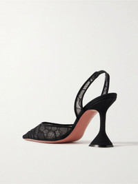 Unexpected fabrications and signature details mean Amina Muaddi's 'Holli' pumps are like objets d'art. This pair is made from black corded lace and set on the designer's trademark pyramid heel. Consider hemlines carefully so the low-cut vamp and sharp point toe remains in focus. Size & Fit - Fits true to size, take your normal size - Italian sizing Details & Care - Heel measures approximately 95mm/ 4 inches - Black corded lace - Elasticated slingback strap