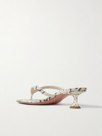 Growing up, Amina Muaddi was taught the importance of doing things slowly and the right way - it's with this mindset that she designs her shoes. These 'Juliette' sandals have been made in Italy from snake-effect leather and rest on comfortable kitten heels. Size & Fit - Fits true to size, take your normal size - Italian sizing Details & Care - Heel measures approximately 45mm/ 1.7 inches - Snake-effect leather (Goat) - Slip on