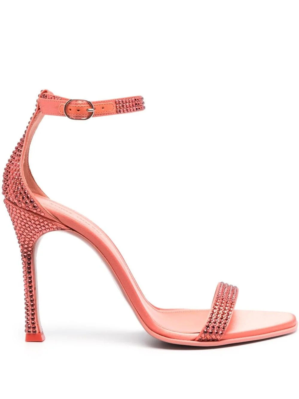 115mm Kim crystal-embellished sandals Highlights - Orange - Calf leather - Satin finish - Glass crystal embellishment - Almond open toe - Buckle-fastening ankle strap - High stiletto heel Made in Italy Composition Outer: Fabric 100%, glass 100% Lining: Calf Leather 100%, Fabric 100% Sole: Calf Leather 100% SIZE & FIT Measurement HEEL 4.52 in(11.5 cm) Sole height 0.39 in(1 cm) HEIGHT 3.14 in(8 cm)