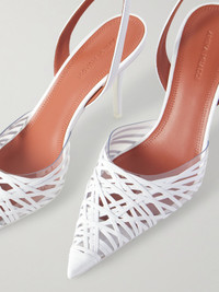 Amina Muaddi's elegant shoes add a glamorous touch to evening looks. Crafted in Italy from clear PVC, these 'Lori' pumps have pointed toes detailed with slim strips of leather that create a cage-like design.
