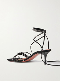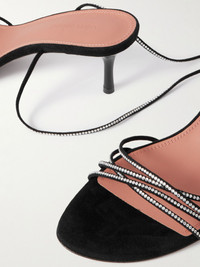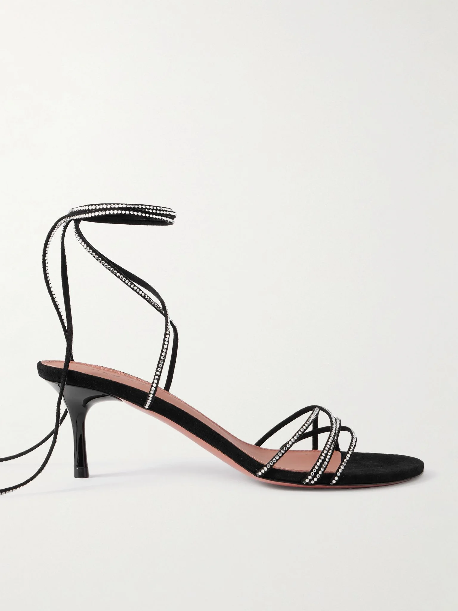 Amina Muaddi's 'Lori' sandals are designed with slim suede straps that cross over at the toes and wrap elegantly around the ankle. They've been meticulously made in Italy and have crystal embellishments and modest 60mm heels. Wear yours with eveningwear or tailored pants. Size & Fit - Fits true to size, take your normal size - Italian sizing Details & Care - Heel measures 60mm/ 2.5 inches - Black suede - Ties at ankle