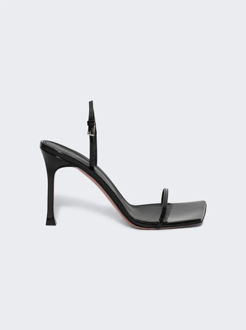 Details - High heel sandals - Patent calfskin upper with leather sole - Ankle strap with silver buckle closure - Goat leather lining - Angled square toe - Stiletto heel - Heel height: 95mm/3.75in Brand Style: MAYA SLINGBACK 95MM Designer/Brand: AMINA MUADDI