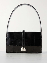 Mina woven patent-leather shoulder bag