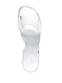 100mm Brigitte sandals Highlights - Silver-tone - Transparent design - Calf leather - Open toe - Open back - Branded footbed - 100mm high block heel - Slip-on style Made in Italy Composition Sole: Calf Leather 100%, Rubber 100% Lining: Calf Leather 100%, Rubber 100% Outer: Fabric 100%, Rubber 100% SIZE & FIT Measurement HEEL 3.93 in(10 cm)